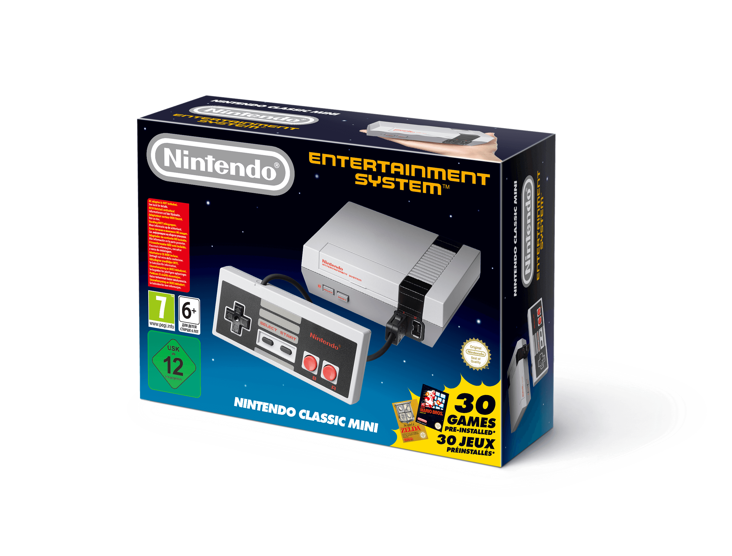 Denne versjonen av den klassiske NES-konsollen er i miniformat og kommer innebygd med 30 ulike NES-spill, inkludert populære klassikere som Super Mario Bros., The Legend of Zelda, Metroid, Donkey Kong, PAC-MAN og Kirby's Adventure.