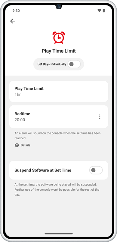 Du kan også enkelt sjekke om barna holder seg innenfor den fastsatte spilletiden. Hvis du bruker funksjonen «Suspend Software», vil konsollen varsle om at spilletiden er ute, og deretter gå automatisk i hvilemodus.